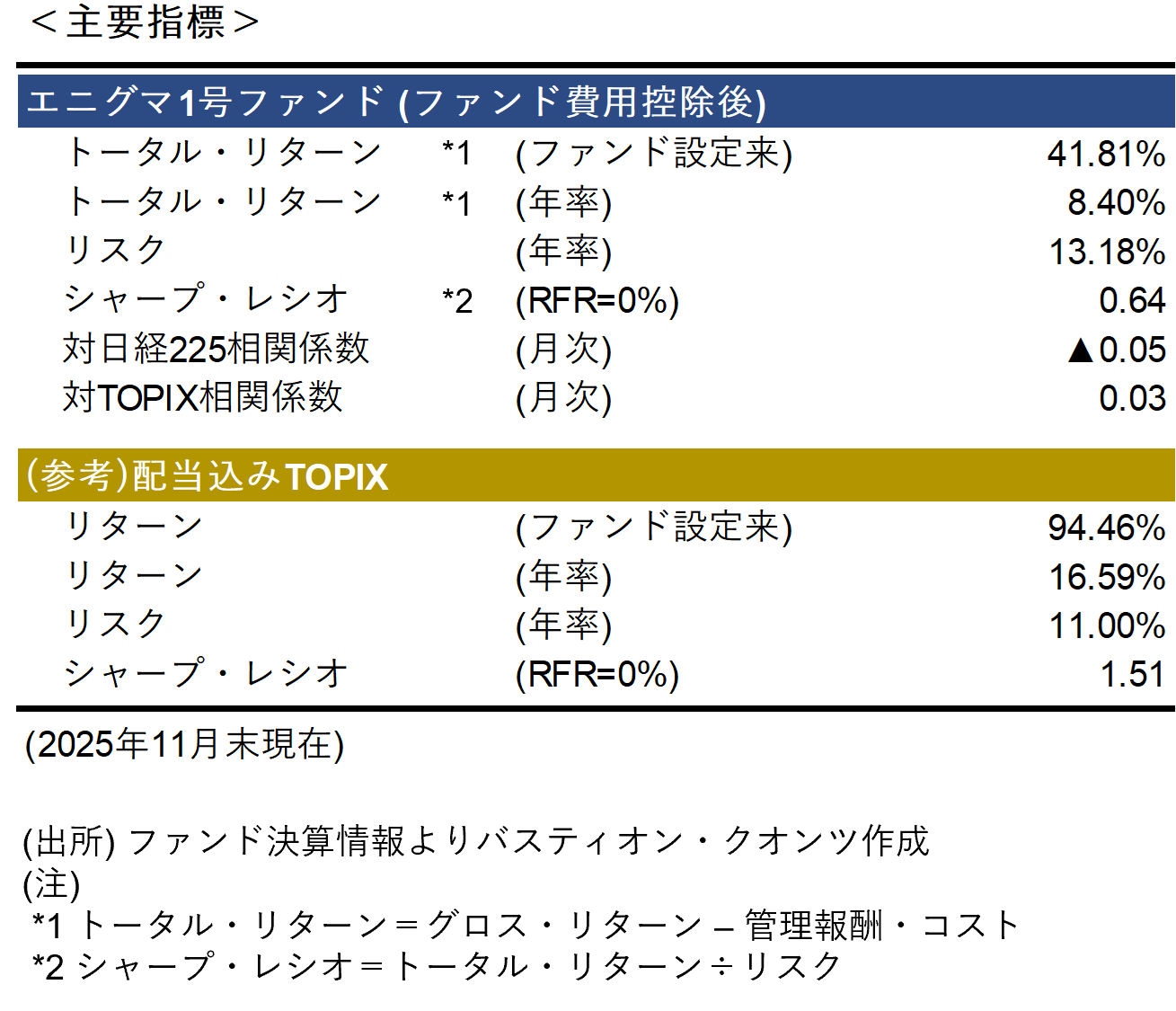 マンスリーレポート(2025年11月) - エニグマ1号ファンド