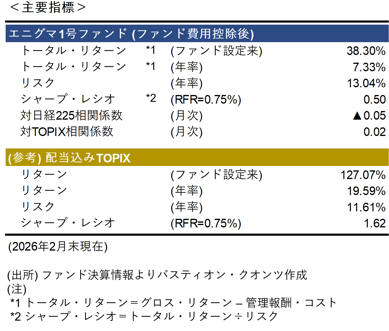 マンスリーレポート(2026年2月) - エニグマ1号ファンド