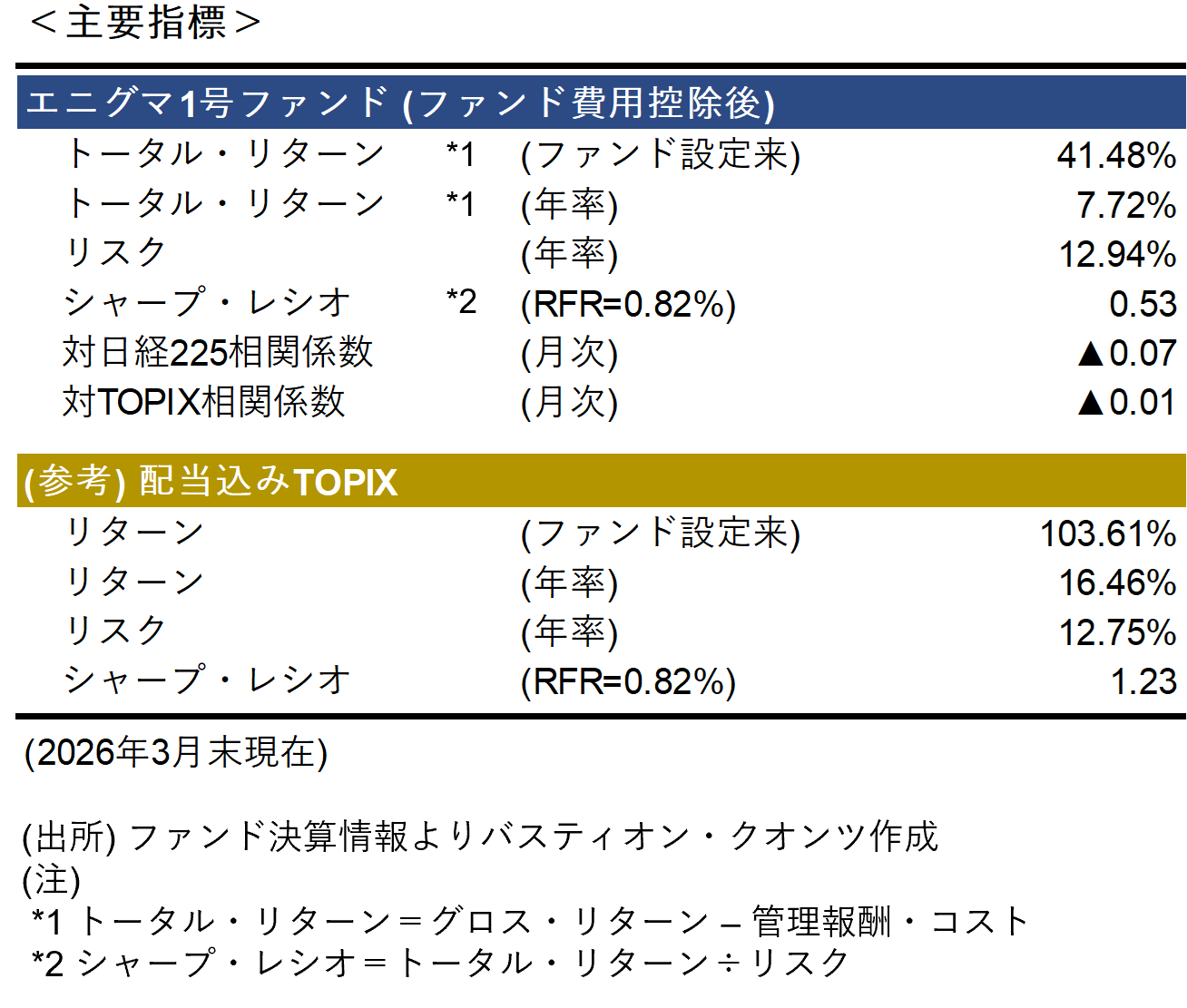 マンスリーレポート(2026年3月) - エニグマ1号ファンド