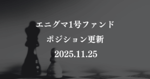 当サイト内の投稿は投資家の皆様にできる限り早く正確なファンドの情報をお伝えすることを主な目的としております。許容レバレッジや対象商品の保有期間、その他前提条件が異なる場合はとるべきポジションは自ずと異なるため、その他の閲覧者様におかれましては安易なポジションの複製はお控えください。当ファンドにとって重要なマクロ事象の突発的な変化が生じた場合には、当サイト内の最新の投稿が必ずしもファンドのリアルタイムのポジション及びレバレッジを表さない可能性があります。また如何なる投稿記事も特定の商品の売買を推奨するものではありません。